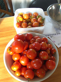 I grew to appreciate the small size of the main variety we grew as they were perfect for snacking on with a bit of cheese and an olive and on savory crackers too. They were just the right size and had such a beautiful tomato flavour. One one occasion at the beginning of the harvest we pigged-out on a whole bowl in one snack-sitting. But it didn't matter — there were hundreds still growing out in the garden.